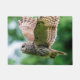 Un búho barrado en vuelo, en un bosque en el condado de Dutchess, NY. Esta foto fue tomada por Debbie aprisa de las imágenes creativas de Debs. Para ver la foto mayor de Debbie, compruebe hacia fuera su Web site en: www.debscreativeimages.com