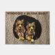 Este doormat ofrece los perros perdigueros de oro vestidos como búhos en el hueco de un árbol. El mensaje lee, "WHOOOO en la puerta?".