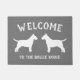 Este doormat original de los amantes de Bull Terrier puede ser personalizado con su apellido o lema. Hace un regalo maravilloso para los nuevos propietarios de casas, recién casados, papás de perro, mamás de perro y todo aquel que ame a sus mascotas como familia. Visite el Doodle World de Jenn para ver más felpudos de raza de perro y decoración de casa con temática Bull Terrier.