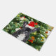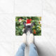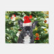 Bulldog francés Ornamentos de árbol de Navidad Doormat. Bulldog francés con adornos de árbol de Navidad Hombre de nieve en el fondo.