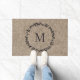 Felpudo Burlap Monogramado de la granja Rustic Laurel Wrea