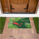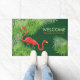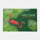 Felpudo Burlap verde con flamencos rosados