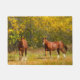 Dos caballos de la castaña contra un fondo de oro del follaje de otoño hacen esto una estera de puerta casera verdaderamente especial.
