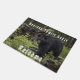 El felpudo perfecto para tu casa de campo o cabaña. Foto de un oso negro grande caminando por el bosque. Añade tu texto para personalizar.