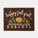 Doormat clásico y elegante para los colores bonitos y coloridos de la estación del otoño - "caída feliz usted" texto con una calabaza, las vides, las hojas, y su apellido - del otoño del marrón castaño, del naranja del butternut, del blanco verde oliva del verde, de lino, y más.