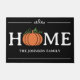 ¡La caída está en el aire! Cambie su tradicional felpudo con este lindo y simple felpudo de calabaza personalizado. El diseño de la tipografía muestra la palabra "Hogar" en blanco con texto con un acento de calabaza naranja lindo en lugar de la "O". Añade tu apellido o apellido a continuación para personalizar.