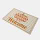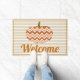 Prepárate para la caída con este doormat de calabaza trendy y adorable con patrones de chevrons con la palabra "Bienvenidos" en escritura gruesa.