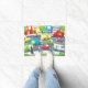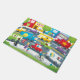Artista: Marcus Cutler | ilustracion de una concurrida calle y parada de autobús con peatones y coches, camiones y tiendas y un niño en bicicleta