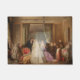 Este diseño presenta un cuadro del pintor inglés de la era victoriana, George Elgar Hicks (1824-1914). Muestra a una esposa entrando en la gran casa de su nuevo marido después de una elegante ceremonia de boda. La novia lleva un largo vestido blanco de estilo tradicional. El novio lleva un traje matutino tradicional y corbata, y tiene la mano puesta en una elegante silla roja que parece un trono, haciendo gestos por que su esposa esté sentada. Hay muchos miembros de la familia celebrando con el marido y la mujer, incluidos niños pequeños y parientes mayores. Todos están usando su mejor ropa para esta ocasión especial. Es un momento alegre para la pareja feliz, que apreciarán por el resto de sus vidas. La obra original fue pintada en 1862.