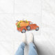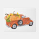 Camión de camioneta naranja vintage con calabazas y girasoles en la parte trasera