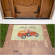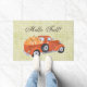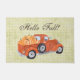 Gran país Diseño otoño/otoño presenta ilustracion acuarela de un camión naranja vintage lleno de calabazas de cosecha, personalizable "Hola otoño!" texto en un fondo perturbado con patrones punto neutros