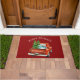 Bienvenido a sus huéspedes esta temporada festiva con este elegante felpudo de navidad Rustic Red Truck Happy Holidays Christmas Tree. Este divertido diseño inspirado en una casa de campo presenta un camión rojo vintage con un árbol de Navidad y regalos de Navidades en la parte de atrás sobre un fondo rojo. El sencillo guión dice "Felices Fiestas" en una tipografía elegante. Personaliza fácilmente con tu nombre y año. Encontrará elementos fiestas coincidentes.
