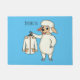 ¡Esta feliz oveja tiene su propia chaqueta de lana! Dibujado en un divertido estilo personalizado.