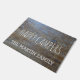 El regalo casero rústico lindo de la decoración para los rvers, los viajeros jubilados, los caminantes, los campistas, y los amantes de naturaleza es este doormat de madera personalizado de la mirada que lee los campistas contentos con una plantilla para añadir apellido abajo en las letras blancas. Contra una foto del fondo de la madera rústica, apenada que es marcada con una cicatriz y vieja. Gran regalo del retiro, también. Correcto en casa delante de rv o de una cabaña de madera acogedora.