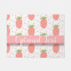 Filas de fresas en rosa profundo con hojas verdes, por toda una cinta que puede sostener el texto (¡si lo desea!). Personalizar a su gusto.