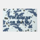 Patrón de camuflaje de invierno, blanco, azul y verde, de estilo digital. Añade tu propio texto.