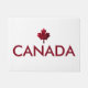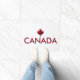 Canadá con una fuente en mayúscula de color rojo profundo, con una bandera ondulada, animada con dos tonos de hoja de arce rojo. Colocado en blanco sólido.