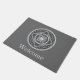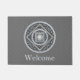 Esta mandala fue diseñada para el signo del zodiaco, el cáncer, que representa una piedra de luna en el centro rodeada de elementos que representan el signo, como el símbolo del signo, la constelación y el símbolo alquímico del agua, así como las viñas y cuevas de filigree que la envuelven en una imagen sólida en tonos de blanco-azul, plata y gris. Personalizar el texto en este felpudo con tu saludo preferido o suéltalo completamente para hacer una decoración única para tu entrada.