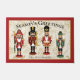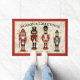 Doormat personalizado de los cazadores de nueces - Saludos de las estaciones Bienvenido a los huéspedes con estilo festivo con este doormat de Nutcracker personalizado. Cuatro encantadores soldados de Nutcracker se encuentran orgullosamente en el centro de este diseño, con un fondo beige profundo con hojas y bayas huecas. La parte superior de la alfombra incluye las palabras "Season's Greetings" (Saludos de temporada), mientras que la parte inferior ofrece un espacio para la personalización, lo que la convierte en una adición única a la decoración de tus vacaciones. Perfecto para las entradas, este doormat añade un toque de magia y calidez a los Navidades tradicionales.