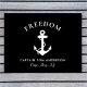Un moderno y elegante portero de temática náutica para el barco que cuenta con un ilustracion blanco de ancla sobre fondo negro. Personalice con el nombre de su barco, el nombre del capitán o de su familia o algo similar, y una ubicación.