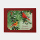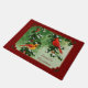 Un par de cardenales rojos norteños machos y hembras se colocan en un árbol hueco, mientras que un tercer cardenal se sienta en una cesta de madera tejida llena de hojas y bayas recién recolectadas. Imagen creada a partir de una pintura al óleo original de Crista Forest.