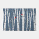 Par de cardenales rojos sentados en un abedul con copos de nieve sobre fondo azul estrellado.