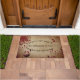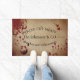Este personalizado doormat presenta un temática de horror espeluznante. El fondo es de un color marrón gastado y sucio, con manchas de sangre salpicadas a través de él. Dos manos sangrientas aparecen en la parte inferior. El nombre de una tienda de carniceros de ejemplo se imprime cerca de la parte superior, que puede personalizar para incluir su propio nombre y texto personalizado.