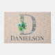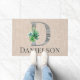 La elegante estera de la puerta delantera cuenta con una letra decorada / la D inicial tiene un relleno de madera de playa gris y templada con una disposición adicional de varios suculentos sobre un fondo de color beige. Personalizar con nombre o mensaje de bienvenida en la parte inferior.