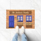 Felpudo Casa de ladrillo con Personalizado de puerta azul