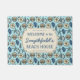 Esta casa de playa de bonito tiene un patrón de conchas en tonos azul claro, azul acuático, beige y crema. En el cartel central, el texto dice: "Bienvenidos a la Casa de la Playa [Su nombre familiar]". Utilice el campo de plantilla sencillo para agregar su nombre. "Beach House" también se ha convertido en una plantilla, en funda quieres cambiarla a "Summer Home", "Lake House" o cualquier otra palabra que quieras.