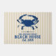 Felpudo Casa de playa de cangrejo azul y franjas náuticas