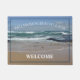 El Personalized Beach House Ocean Door Mat cuenta con una tranquila fotografía de las olas azul y blanca, los cielos azules y la arena dorada de la costa de Melbourne, en Australia. Haga de su casa un hogar y dé la bienvenida a los visitantes con esta tapicería de puerta. El texto está escrito en blanco y moderno, lo que es personalizable para que puedas añadir tu propio nombre de familia.