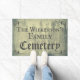 Este doormat temático personalizado de Halloween presenta un diseño de hormigón espeluznante. La frase "Cementerio familiar" está impresa en un tipo de letra gris oscuro y siniestro con un nombre de familia de ejemplo encima. Puede personalizar el felpudo e incluir su propio nombre familiar, nombre comercial u otro mensaje de personalizado.