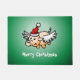 El divertido y lindo cerdo volador sobre un felpudo de Navidades en colores verdes.