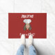 Cabeza del chef con gorra, pañuelo rojo y texto personalizado.