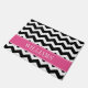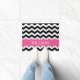 Estera de puerta de encargo del modelo del galón. Un diseño elegante y moderno es negro, blanco y rosa. Personalice fácilmente con su apellido.