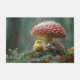 Felpudo Chick y peto escondiéndose bajo un hongo