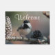 Conos del Chickadee y del pino con el fondo hued color de rosa suave con el texto que lee la "recepción" pero no dude en cambiar o quitar si usted tiene gusto.