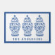 Este doormat de jengibre jar presenta tres jarrones de jengibre de color azul y blanco. Puedes personalizar con tu nombre debajo del jarrón.