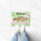 Una acuarela de una tierna y tierna cucharita en un manzano adorna esta alfombra de bienvenida.