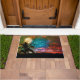 Esta alfombra de puerta tiene una imagen de paisaje de bonito, parece que es de otro mundo.