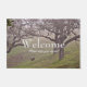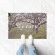 Dos ciervos que cuelgan hacia fuera debajo de árboles en una mañana fría del invierno en California septentrional son el tema para esta estera de puerta. Limpie por favor sus enganches antes de entrar.