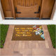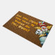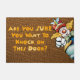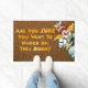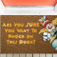 Clown pregunta si quieres tocar? Funny Doormat presenta un payaso colorido señalándote con el dedo, con su pregunta en un colorido texto de color dorado que dice: "¿Estás seguro de que quieres golpear esta puerta?" sobre un fondo de efecto marrón de cuero. Este divertido felpudo podría dar una pausa a los visitantes, excepto tal vez por la gente que te conoce y tu sentido del humor. Este atrevido y colorido felpudo felpudo también es un regalo para los que pueden tomar un chiste. Para más regalos geniales y divertidos para toda la familia, visita nuestra tienda en zazzle.com/VicesAndVerses.