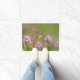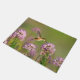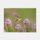 Esta estera de puerta hermosa ofrece una foto imponente de un colibrí rufo y de los Wildflowers de la abeja de la montaña rocosa. Fotografía creada por el fotógrafo premiado Maria Jeffs.