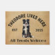El amante del perro personalizado de la línea de la frontera Collie da la bienvenida a doormat. Esta alfombra de bienvenida se puede personalizar con el nombre de su perro, el lema también se puede cambiar o se puede usar una imagen de su propio perro (asegúrese de que es transparente). El texto dice: Theodore vive aquí... Todos los tratamientos son bienvenidos Editar el diseño para cambiar el tipo de letra, los colores y el color de fondo. Hace un regalo maravilloso para un fiesta que hace las delicias del hogar, vacaciones, amantes del perro y casi cualquier ocasión.