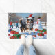 Felpudo Collie rudo en nieve con Gorra Navidad