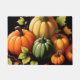 Este arte botánico de temporada presenta una variedad de calabazas en naranja, amarillo y verde con algunas hojas sobre un fondo negro. ¡Perfecto para la temporada de otoño!