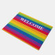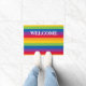 Colorida y gay, rayas de orgullo. Bienvenida a Doormat. Fondo personalizado y fondo de texto.