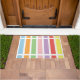 Patrón geométrico lineal, rectangular, rayado de tonos pastel arcoiris de azul, naranja, verde, rosa, púrpura, rojo y amarillo.