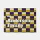 Combinación de colores dorado, beige, marrón y azul oscuro. Un diseño elegante gracias a las líneas depuradas y al minimalismo. Haz la puerta por tu cuenta añadiendo el nombre de tu familia. Y que sus vecinos y visitantes sepan dónde están.